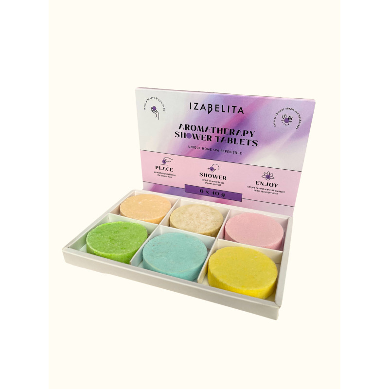Aromaterapinės dušo tabletės sukuria švaros ir gaivos dulksną dušo kabinoje. Jos yra nepakeičiamos keliaujant, puikiai tinka naudojimui duše ne tik namuose, tačiau ir sporto klube, SPA centre ar viešbutyje.